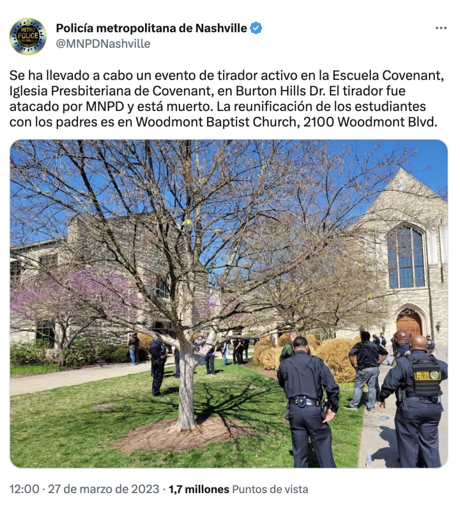 “En una mañana trágica, Nashville se unió a la temida y larga lista de comunidades que experimentaron un tiroteo en una escuela”, escribió el alcalde John Cooper en Twitter.