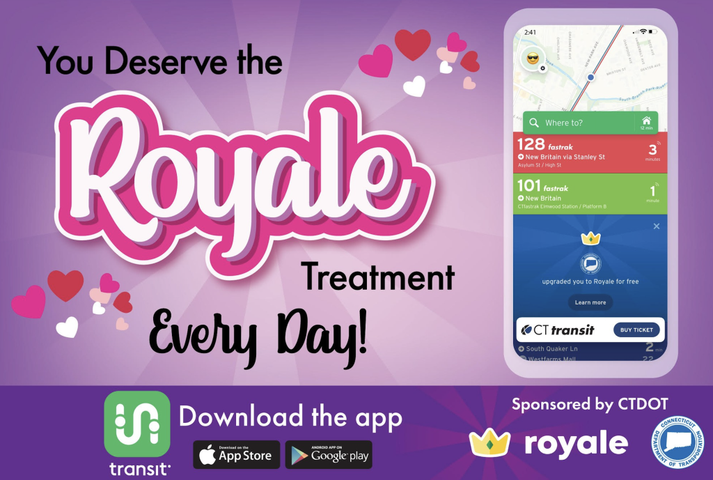 HARTFORD, CT- CTDOT vuelve a ofrecer la actualización gratuita de Transit Royale, como líder de la industria en la mejora de la experiencia de quienes usan con frecuencia el sistema de transporte masivo en el estado.