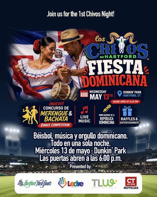Hartford se prepara para una de las noches más vibrantes de la temporada 2026 de los Hartford Yard Goats. El próximo miércoles 13 de mayo, el equipo celebrará la esperada “Los Chivos Night – Fiesta Dominicana” en el estadio Dunkin’ Park, un evento que combinará béisbol, cultura y entretenimiento para toda la comunidad.