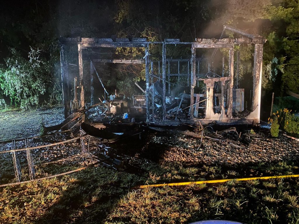 COVENTRY, CT — El marco de un cobertizo en el patio trasero es todo lo que queda después de que un rayo lo golpeó y provocó un incendio durante la noche del martes, según los bomberos de Coventry.