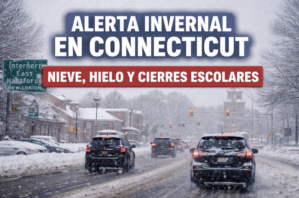 Connecticut enfrenta este martes una jornada marcada por condiciones invernales que han generado cierres escolares y advertencias de precaución en las carreteras en distintas zonas del estado. Un sistema de clima frío está provocando una combinación de nieve ligera, aguanieve y lluvia helada, especialmente durante las primeras horas del día y en el interior del estado.