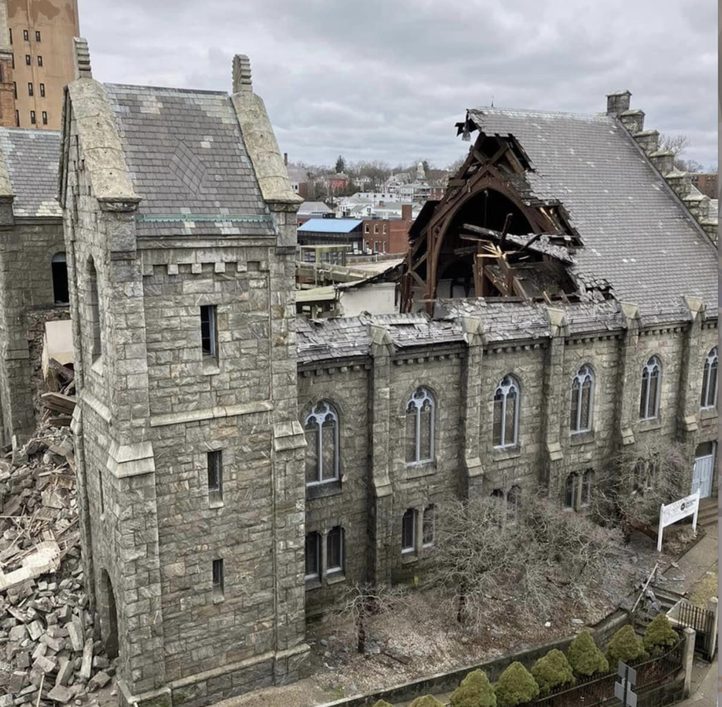 NEW LONDON, CT- Una iglesia se derrumbó el jueves por la tarde en el centro de New London, cambiando para siempre el panorama de la ciudad.