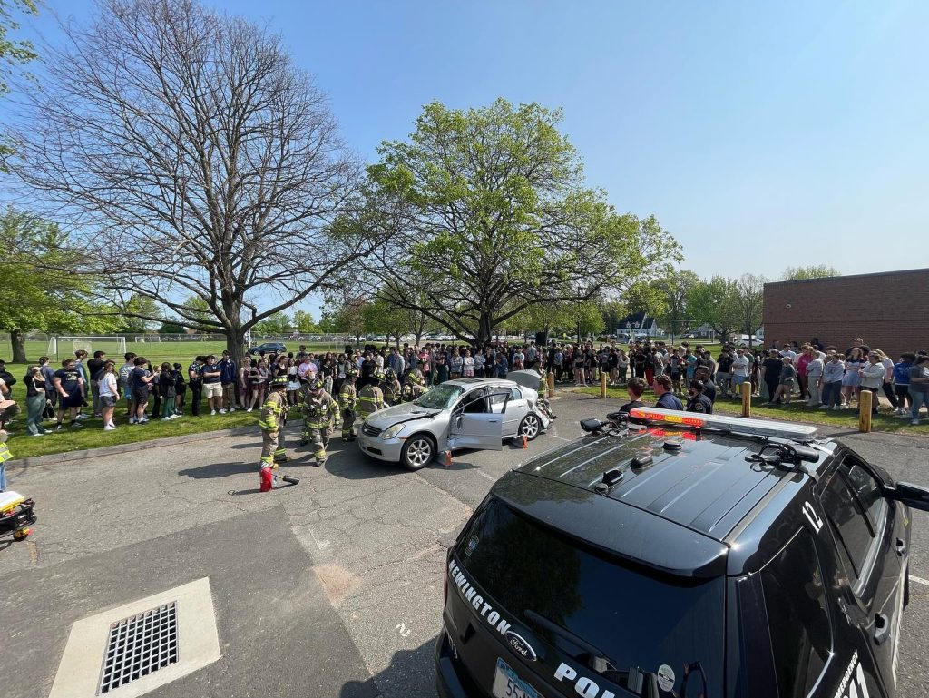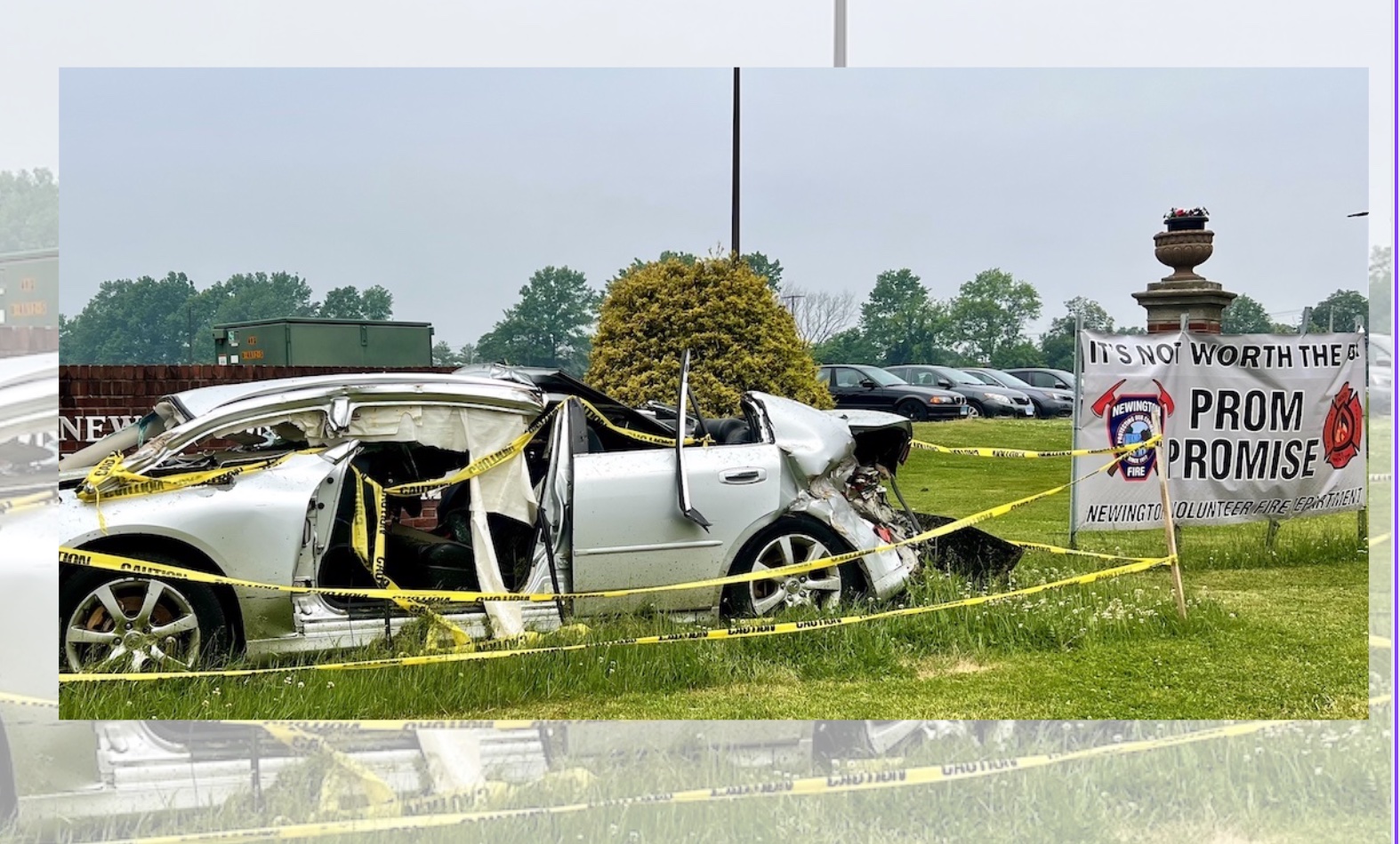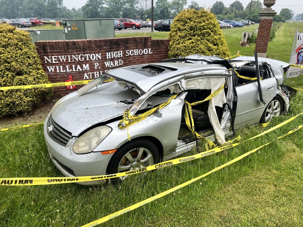 Newington High School y el Departamento de Bomberos Voluntarios de Newington recrearon una escena en las instalaciones de NHS como quedan los vehículos luego de estar involucrados en accidentes que en la mayoría de las ocasiones resulta fatal.