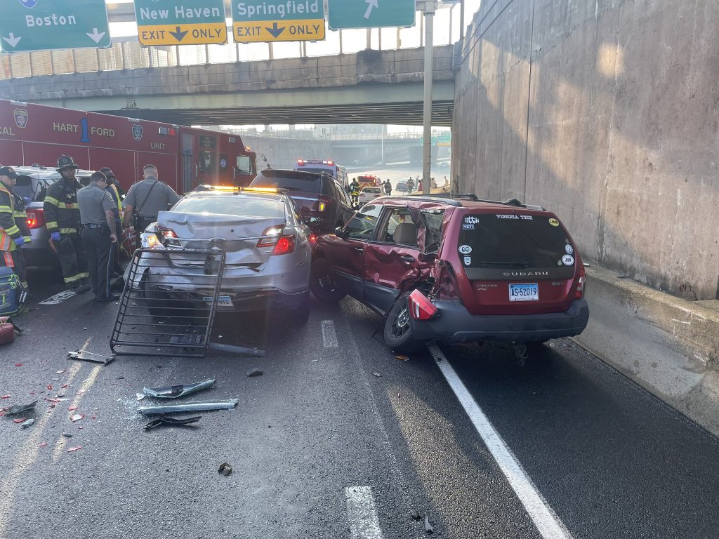 “Un policía acababa de llegar a la escena para ayudar a otro policía con un incidente anterior cuando un vehículo llegó y golpeó la parte trasera de la patrulla”, dijo el policía de Primera Clase Pedro A. Muñiz, de la Policía Estatal de Connecticut. “El policía estaba en el vehículo en ese momento y fue transportado a un hospital del área por lesiones”.