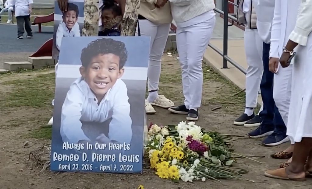 WEST HARTFORD, Conn. — La familia de Romeo Pierre Louis, de cinco años, se reunió el miércoles en Charter Oak International Academy en West Hartford para realizar una manifestación silenciosa y colocar flores donde el niño de cinco años se derrumbó durante el recreo.